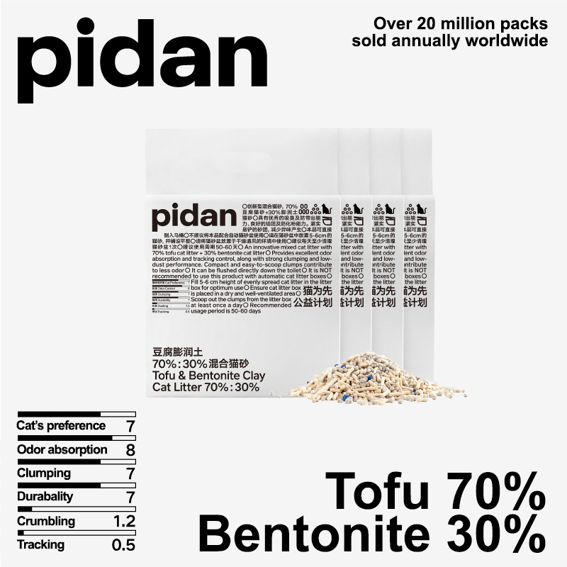 With its odor neutralization and su-purr fast absorption, the Pidan Signature Tofu Blend Cat Litter is a paw-some choice for your kitty’s litter box (sold separately). It’s made with all natural, safe ingredients including food-grade pea dregs and high-quality bentonite clay. This litter creates solid clumps and decreases stickiness for easier cleanup. The tofu and bentonite mix includes antibacterial ingredients and significantly reduces dust for a healthier, cleaner box for your kitty. Since this formula is water-soluble, it’s safe to dispose in the toilet for convenient and eco-friendly cleanup.